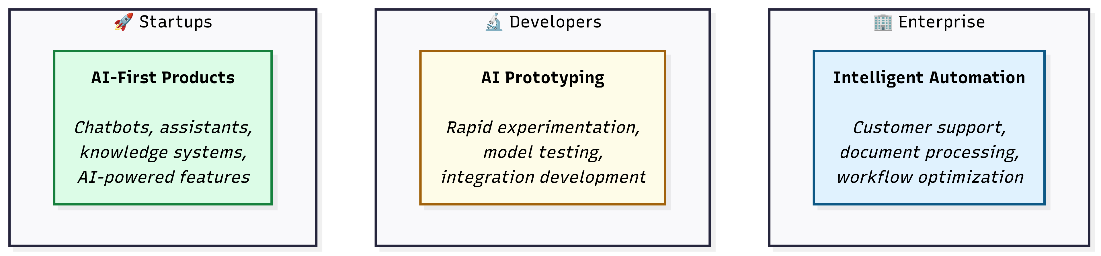 Skip the complexity of traditional coding. Our drag-and-drop interface lets you focus on solving problems, not wrestling with infrastructure. Build sophisticated AI workflows in minutes, not days.